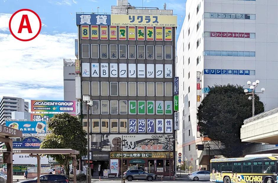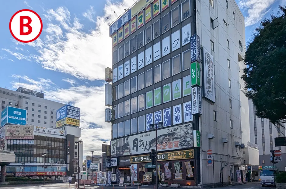 JR宇都宮駅の北口を出て正面に見える、月あかりと書かれたビルの6Fになります。