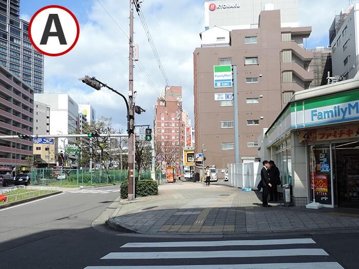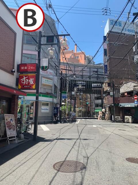 12番出口を出て、左を見ると金券ショップの甲南チケットがあります。甲南チケットとホテルロイヤルクラシック大阪の間の道を直進します。