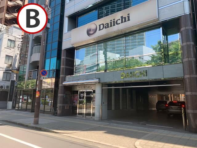 しばらく直進すると、右手にパチンコメーカーのDAIICHIビルが!その北側隣のビルの2階です。(入り口は裏側へ)