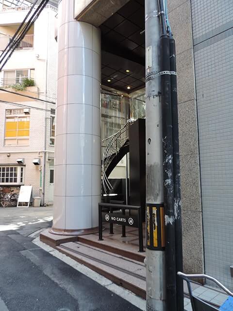裏側の写真はこちらです。ここの螺旋階段からご来院ください。